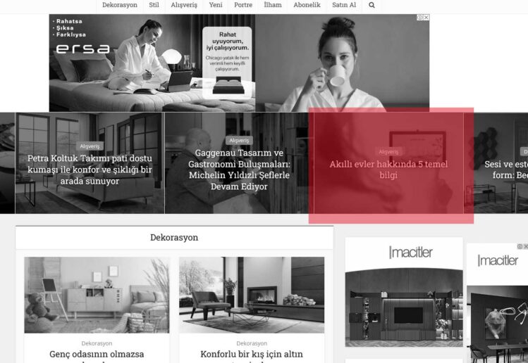 https://www.elledecoration.com.tr/ (ELLE Decoration Dergisi) advertorial yerleşim alanı yukarıdaki görselde kırmızı renkle işaretlenmiş olan manşet (slider) bölümünde yer almaktadır.