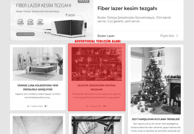 Örnek advertorial: https://maisonfrancaise.com.tr/dekorasyon/ev-dekorasyonlarinin-degismeyen-3lusu.html
